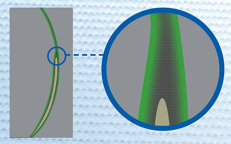 Die endkonturnahe Herstellung der Preform1 ermöglicht eine effiziente Herstellung des fertigen Bauteils. Die Preform kann einfach in das Werkzeug eingelegt und fixiert werden.